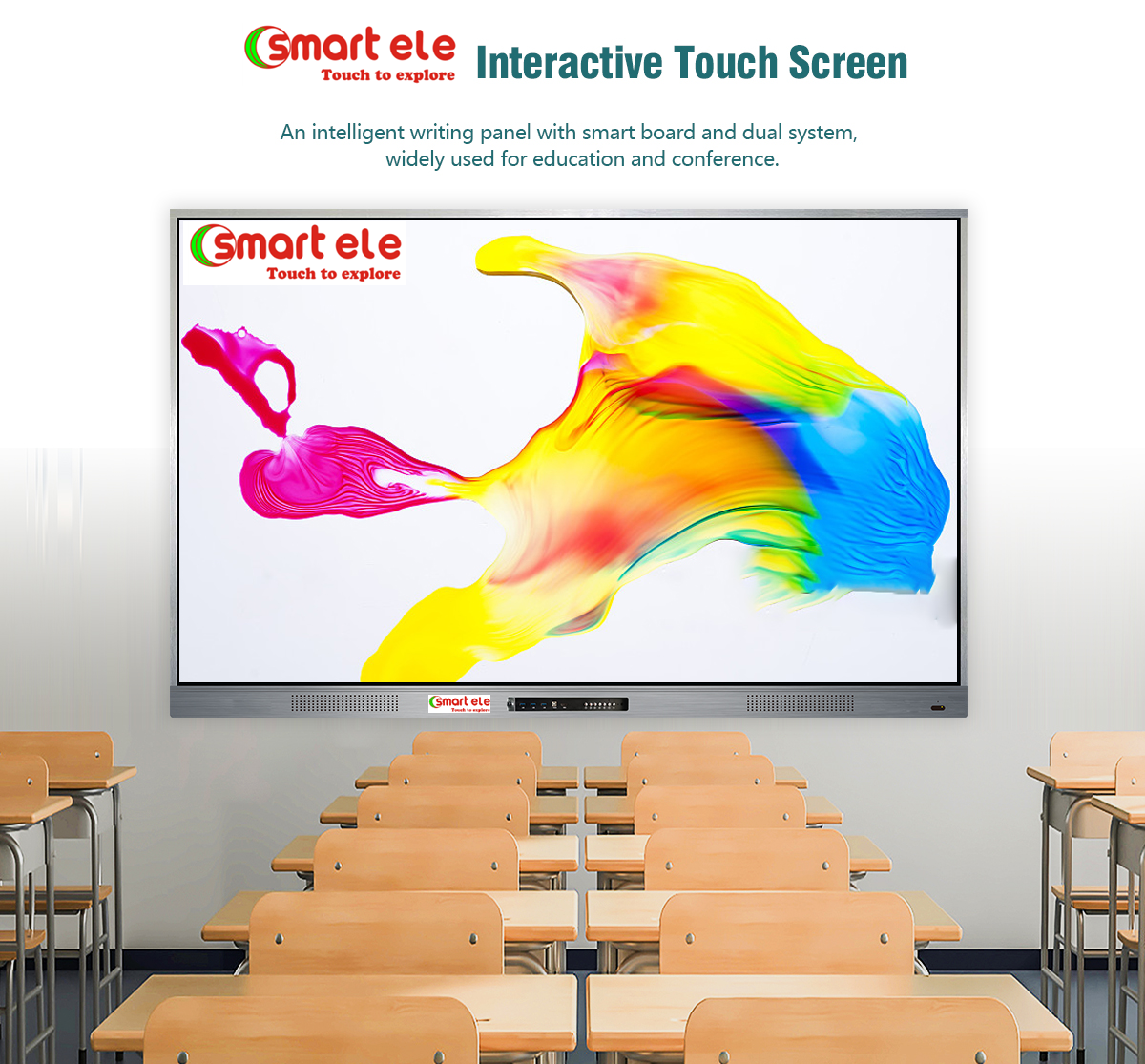 Màn hình cảm ứng tương tác Led Smart ele là một bảng viết đa phương tiện thông minh, tích hợp hình ảnh, âm thanh, video, tương tác, hoạt ảnh và công nghệ trong một, được sử dụng rộng rãi trong giáo dục, kinh doanh và tập đoàn. Với thiết kế viền siêu hẹp ba cạnh, bảo vệ khóa cửa trượt và màn hình 4K UHD, máy được trang bị bảng tương tác và phần mềm truyền màn hình không dây theo cách tương tác giữa người và máy, cho phép chế độ giảng dạy tương tác với nhiều người dùng và kết nối liên thông , làm phong phú thêm việc học trên lớp và nâng cao bầu không khí học tập.