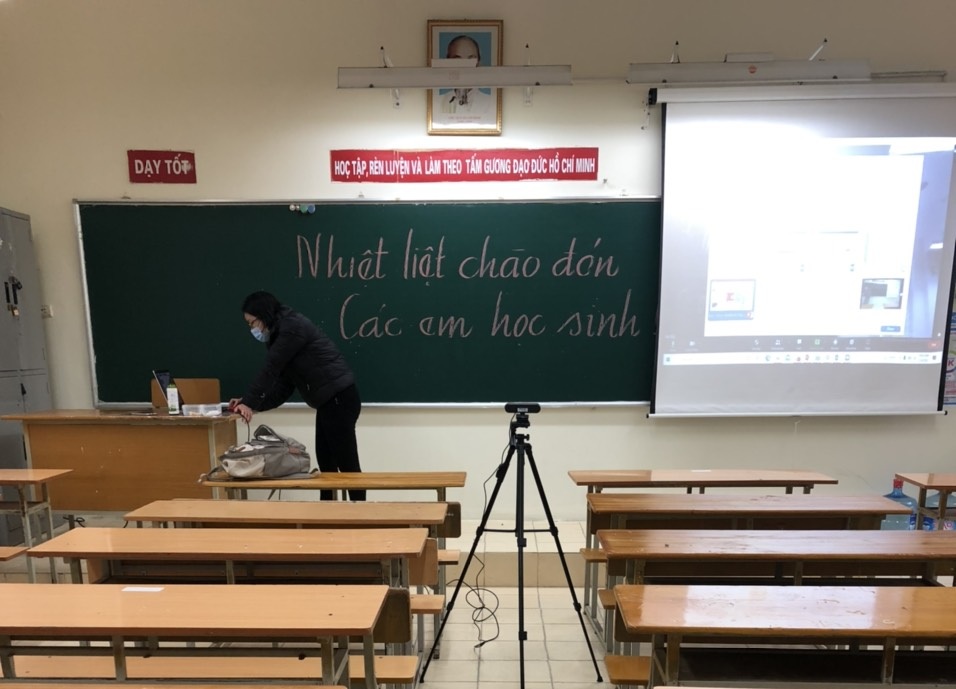 Trong bối cảnh dịch COVID-19 còn có diễn biến phức tạp, nguy cơ khó lường, với tinh thần không để học sinh nào bị bỏ lại phía sau, bên cạnh những chỉ đạo sát sao của Sở Giáo dục và Đào tạo Hà Nội, nhiều trường học trên địa bàn thành phố đã chủ động xây dựng phương án, chuẩn bị trang thiết bị để triển khai các hình thức dạy học kết hợp trực tuyến và trực tiếp.
